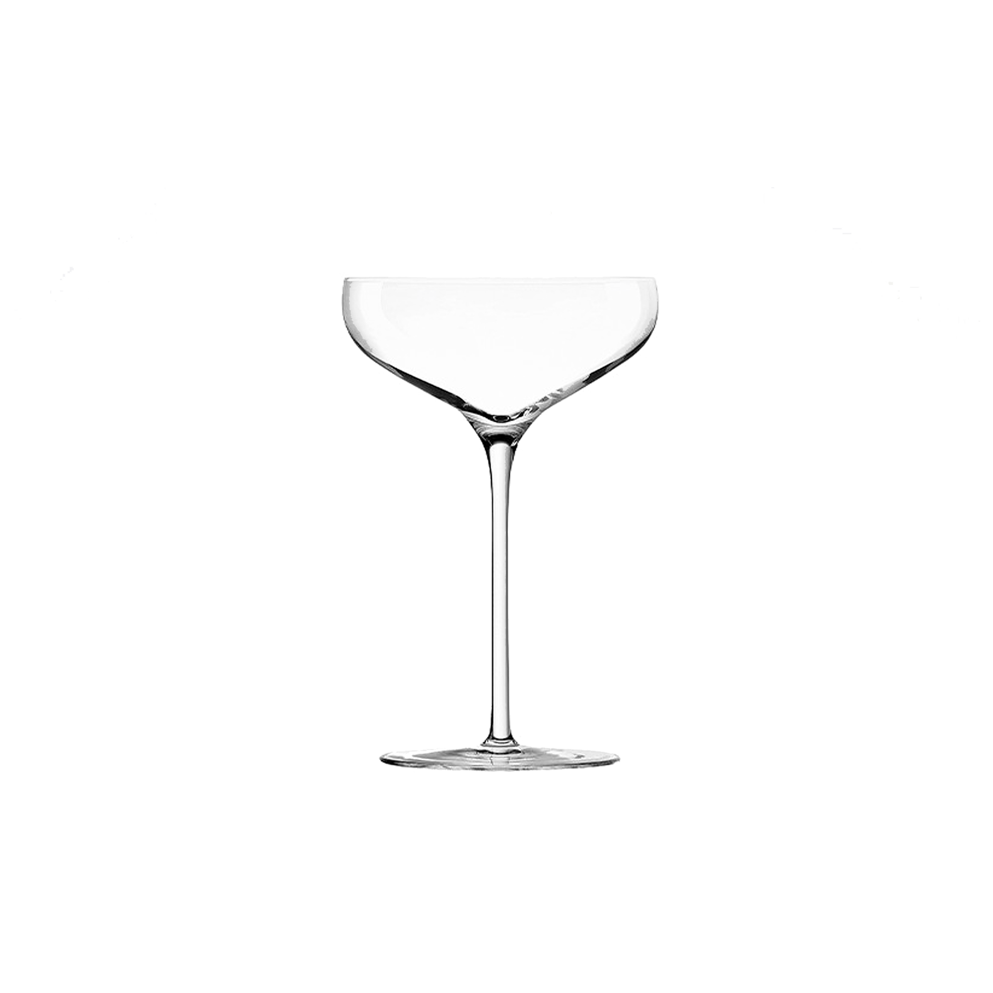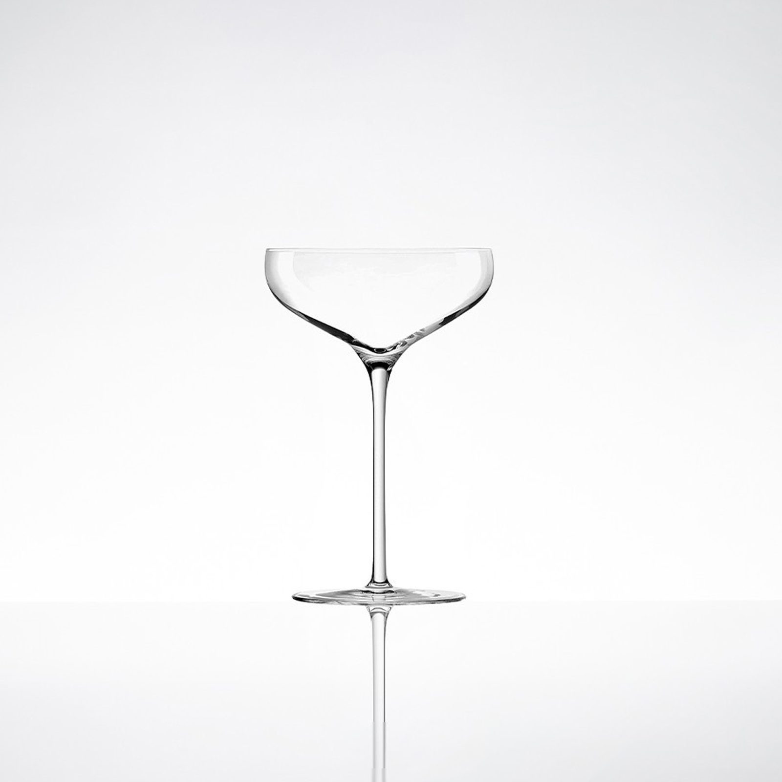 Q2 Champagne Glass—thin-rimmed, lightweight coupe with a long stem, built to the standards of a sommelier glass. From knIndustrie’s Q2 collection, it distills classic stemware into a modern, quietly confident profile.