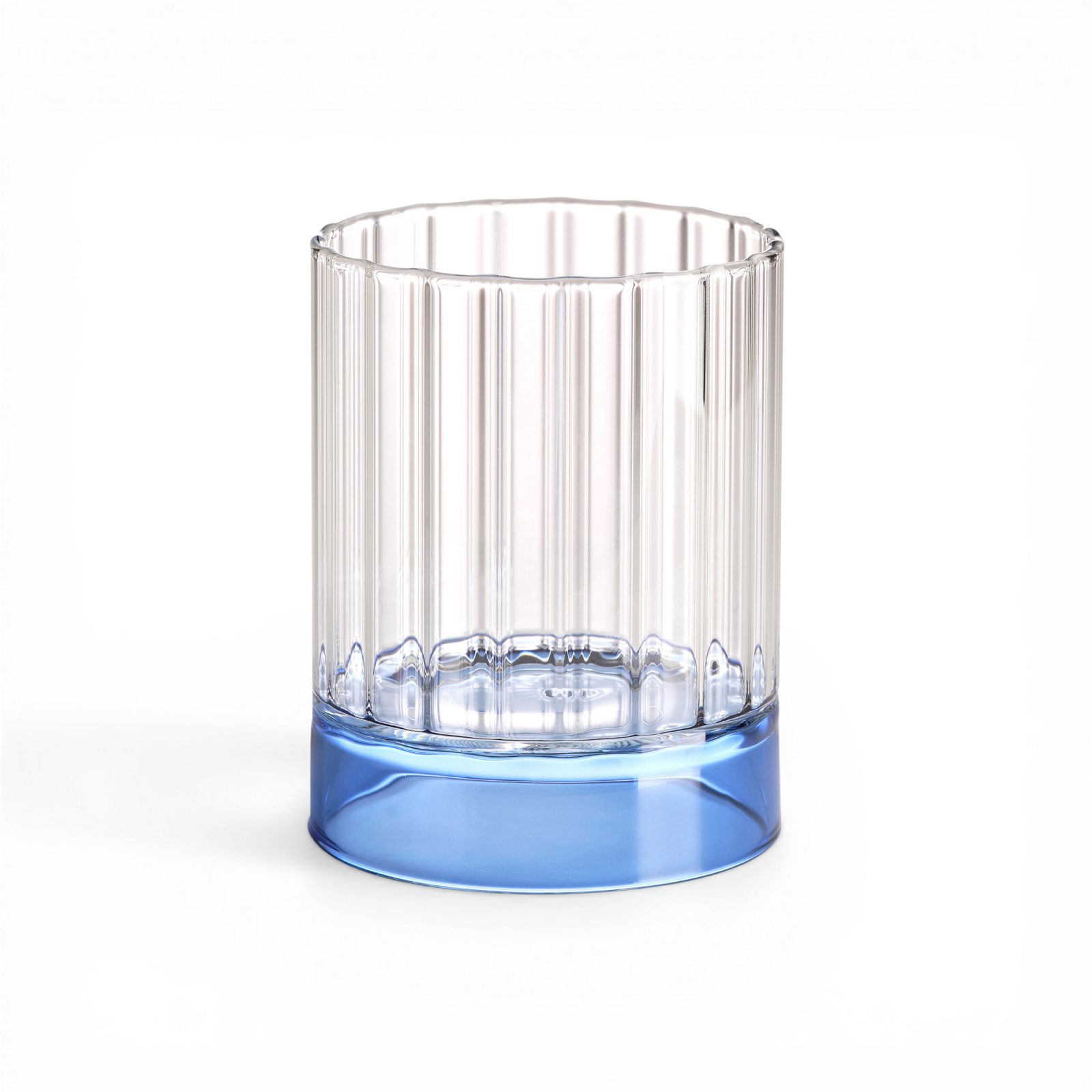 Quattro Note is a set of four borosilicate tumblers that use a simple color accent: each one has a tinted base, so even plain water looks a little more considered on the table. The glass stays clear through the body, then the color pools at the bottom like a soft “foot,” catching light without turning the whole thing into novelty glassware.