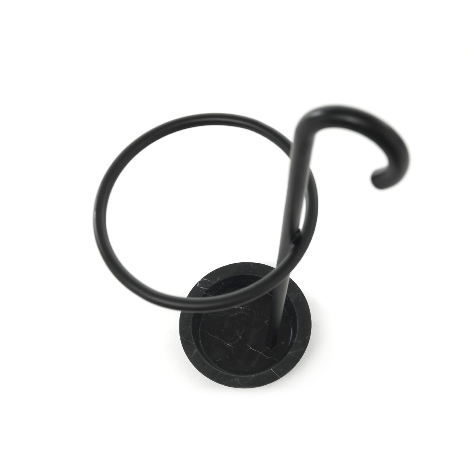 Renè is an umbrella stand in curved beech wood, available with a base in black Marquina marble or in gray resin. The stick is available natural or black stained wood. Renè is an umbrella stand with a hint of magic: a central stick inspired by Magritte, the circle that recalls those used in the circus world or by dancers as hula hoops, elements that refer to a well-known world and reassuring images. Renè has a strong identity: an object that tells a story, and does it with irony.