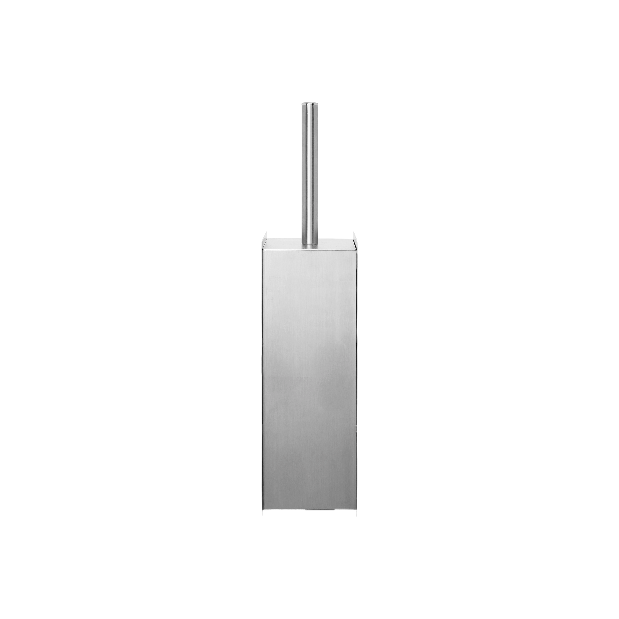 A brushed-steel column with a slim footprint—the brush drops into a matching sleeve and the handle sits flush on top.