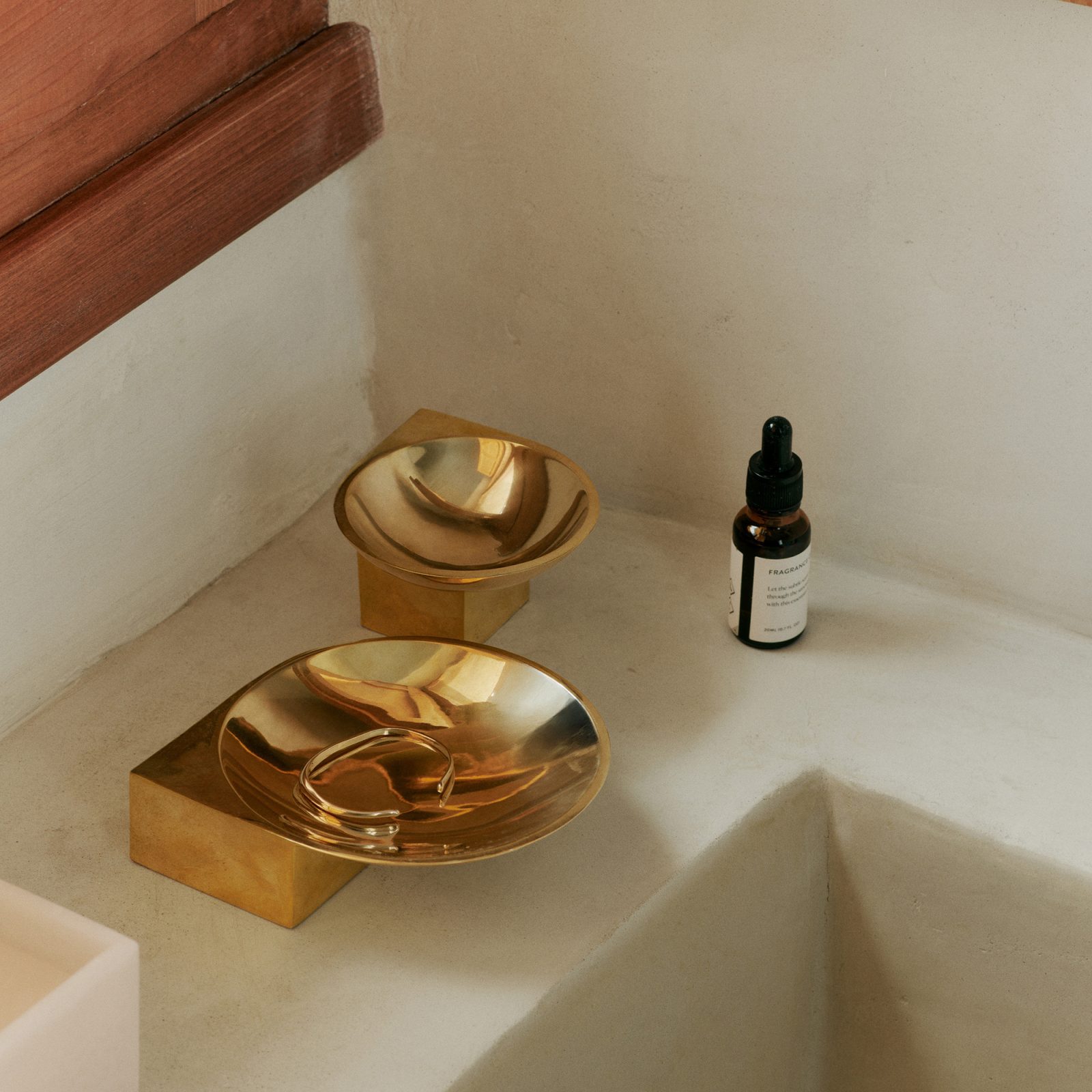 Sculptural yet functional, the Santany Bowl is designed for both display and daily use. Made from solid aluminum or brass, its polished surface interacts with light, creating subtle reflections that highlight its fluid, asymmetrical form. The angular base contrasts with the smooth, concave dish, offering a dynamic presence on a tabletop, shelf, or entryway console.