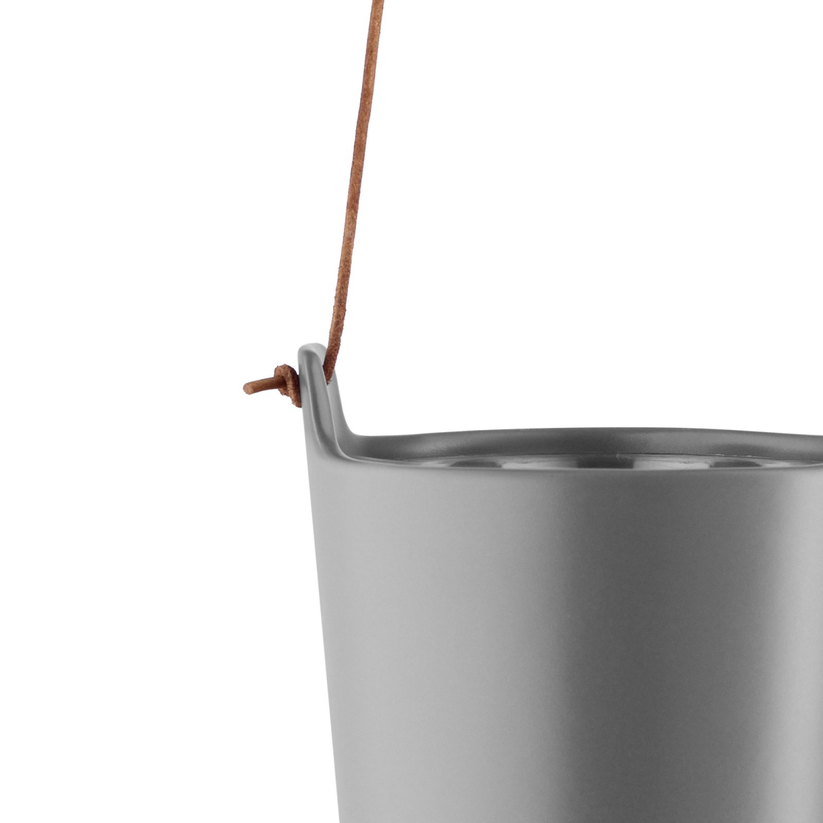 Self-watering, decorative flowerpots in matt stoneware with a leather cord for hanging. An organic design with a self-watering system that provides optimum growing conditions for herbs and flowers. Nylon wicks in the bottom of the upper pot allow the plant to draw up the water it needs from the water reservoir in the bottom pot. The plastic plant insert has a watering channel which makes it easy to refill.