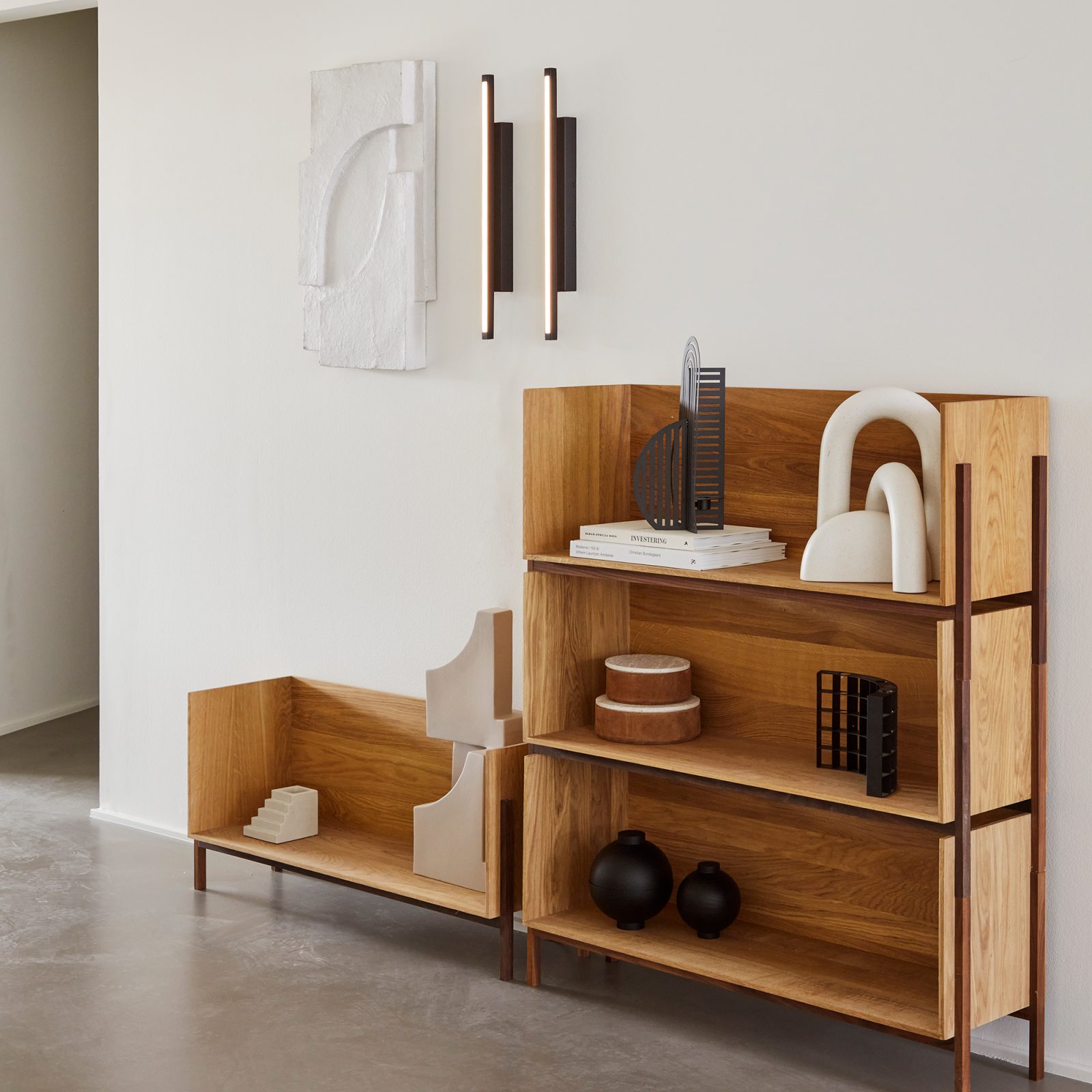 A modern expression and Bauhaus influences combine in the Kristina Dam Shadow Candlestick. Featuring graphic lines that intersect in vertical and horizontal planes, this metal candle holder transforms lit candles into art objects. The sculptural structure creates fascinating optical illusions from any angle, with the effect becoming more pronounced as you light the candle to project shadows on a table or a wall. Crafted from powder-coated steel, this modern candlestick is as durable and easy to clean as it is striking. Use it in a living room, place it on a bedside table, or put it on a windowsill to create a cozy and refined atmosphere in your home. Great to use individually, the Kristina Dam Studio Shadow Candlestick also beautifully complements the Dash Candlestick from the same series.