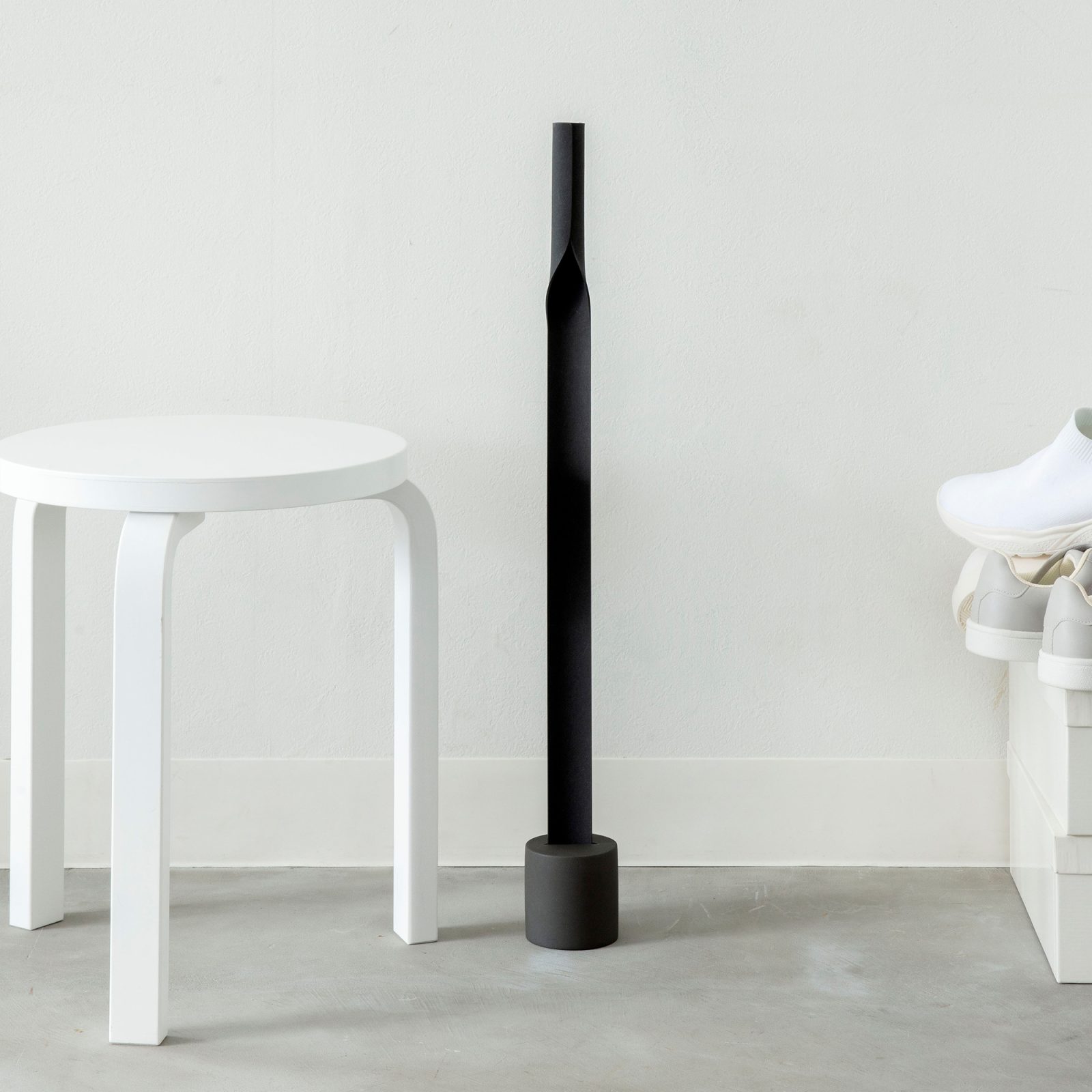 The Moheim Shoehorn is a sustainable item made of vulcanized fibers of cotton and wood pulp. It is an “earth-friendly” material that allows to be decomposed by microorganism of the soil. The shoehorn is lightweight, flexible and ergonomic. Beautifully handcrafted it comes in white or black color, it features a concrete base where it can rest and be ready to use.