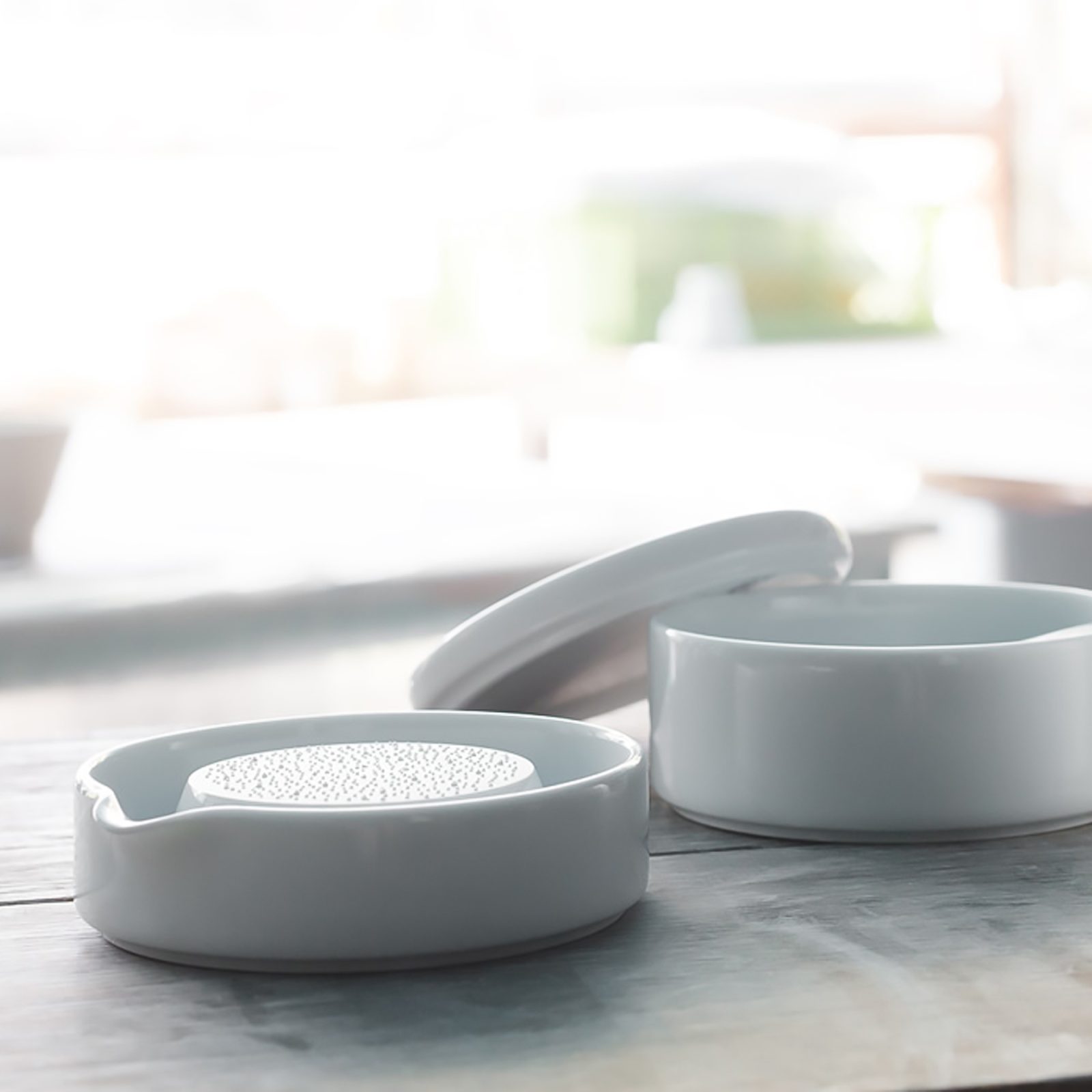 A functional container designed for storing spices or even fresh ginger. The porcelain lid features a sealing ring that ensures an airtight seal for the jar.In Japan, where space is often limited, the design of products prioritizes functionality and stackability. This principle is evident in the Sitaku series, which can be neatly stacked on one another after use, allowing for efficient cabinet storage and space conservation. Every piece in this series is crafted in Arita, a renowned porcelain city situated on the southernmost Japanese island. Arita’s history has been intricately intertwined with porcelain since the early 17th century.