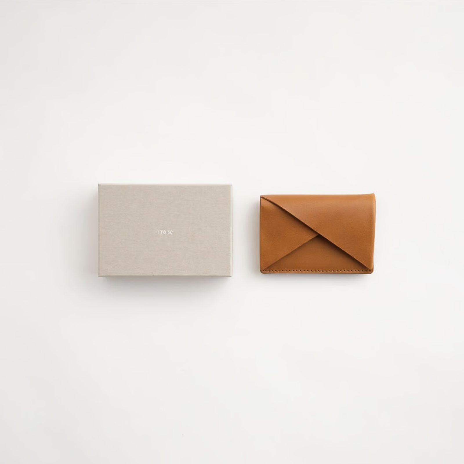 Slim, minimalist and compact, the Slant Card Case Brown from Japanese brand i ro se is the perfect choice for your cards, cash, and small items you want to keep close and secure. The elegantly simple design references the art of origami with two folding leather flaps that create two separate pockets. With each pocket able to hold up to 10 cards, this card case is ideal for everyday use. Supple and soft, the durable leather is specially tanned and infused with an oil treatment to ensure many years of use. Indeed, the Slant Card Case Brown will develop more character over time, as you will leave your mark on the natural material every time you will open and close the pockets. Like a vintage leather case, the Slant Card Case Brown will only get more gorgeous over the years. Also available in a black version, both handmade in Japan.