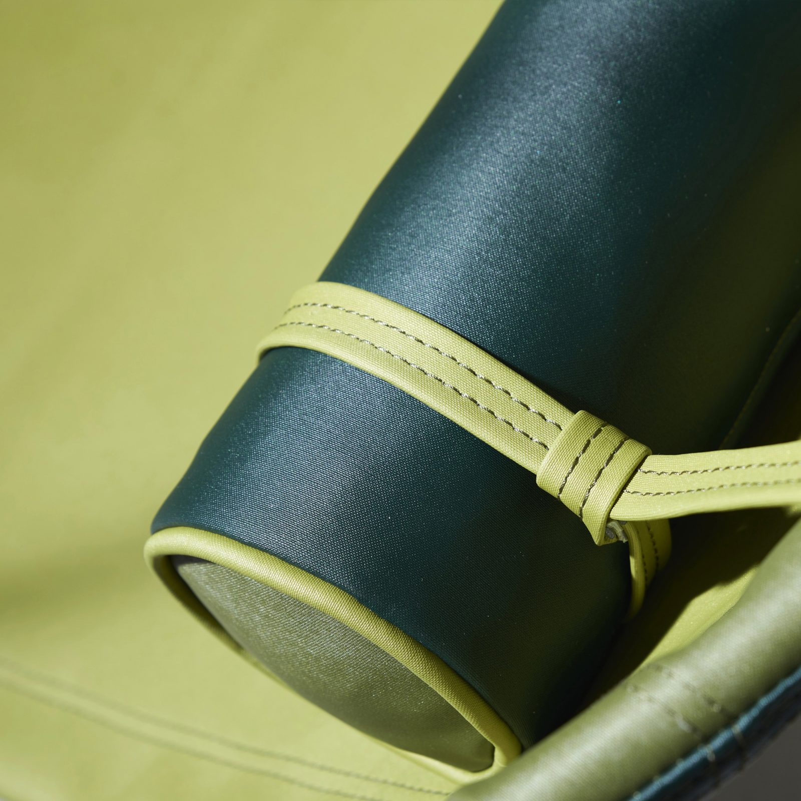 Take a moment to unwind with the Sling Outdoor lounge chair. Featuring Studio Stirling’s popular Sling design, this outdoor version transforms any garden or terrace into your favorite relaxation space. The hanging chair boasts a circular frame made from powder-coated stainless steel and a seat made from a Spradling Silvertex material. This textile is vegan, sustainable and environmentally-friendly as well as resistant to the elements. Unlike other chairs from the same series, Sling Outdoor allows the installation of two chairs in a twin composition. Each chair is handmade in South Africa by master craftspeople. Sling comes with the included installation mechanism and a bolster that enhances comfort further.