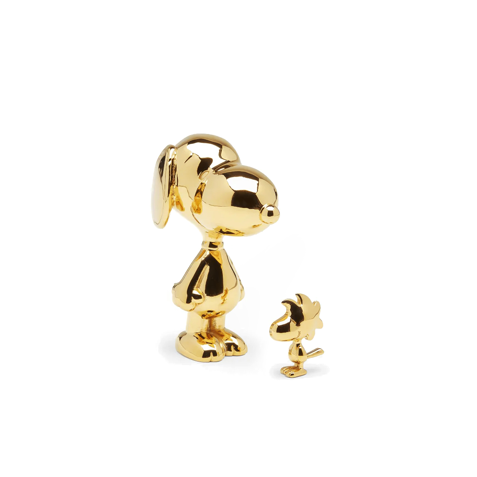 Snoopy & Woodstock is part of Skultuna’s Peanuts collaboration, produced as a paired sculptural object in gold-plated stainless steel. The two figures are cast as separate forms, scaled in proportion to one another, and finished with a polished surface that emphasizes their silhouettes rather than surface detail.