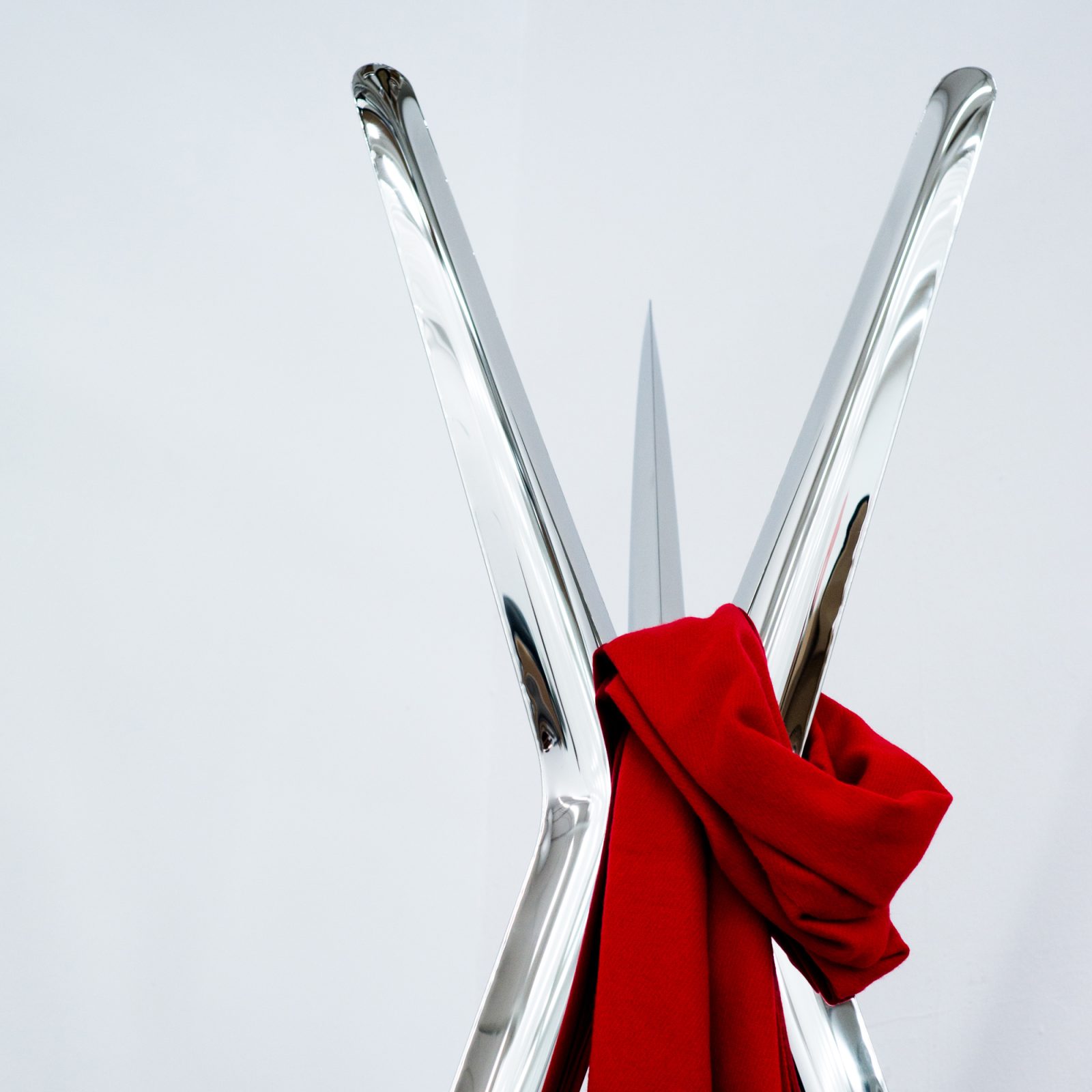 Designed by Zieta Studio, Snopek features soaring geometric lines and a reflective finish, making it a standout piece in any space. Whether used to organize coats, jackets, or accessories, it adds a touch of minimalist elegance while seamlessly blending into modern interiors. The polished steel coat hanger not only offers durability but also creates captivating reflections that interact with its surroundings.