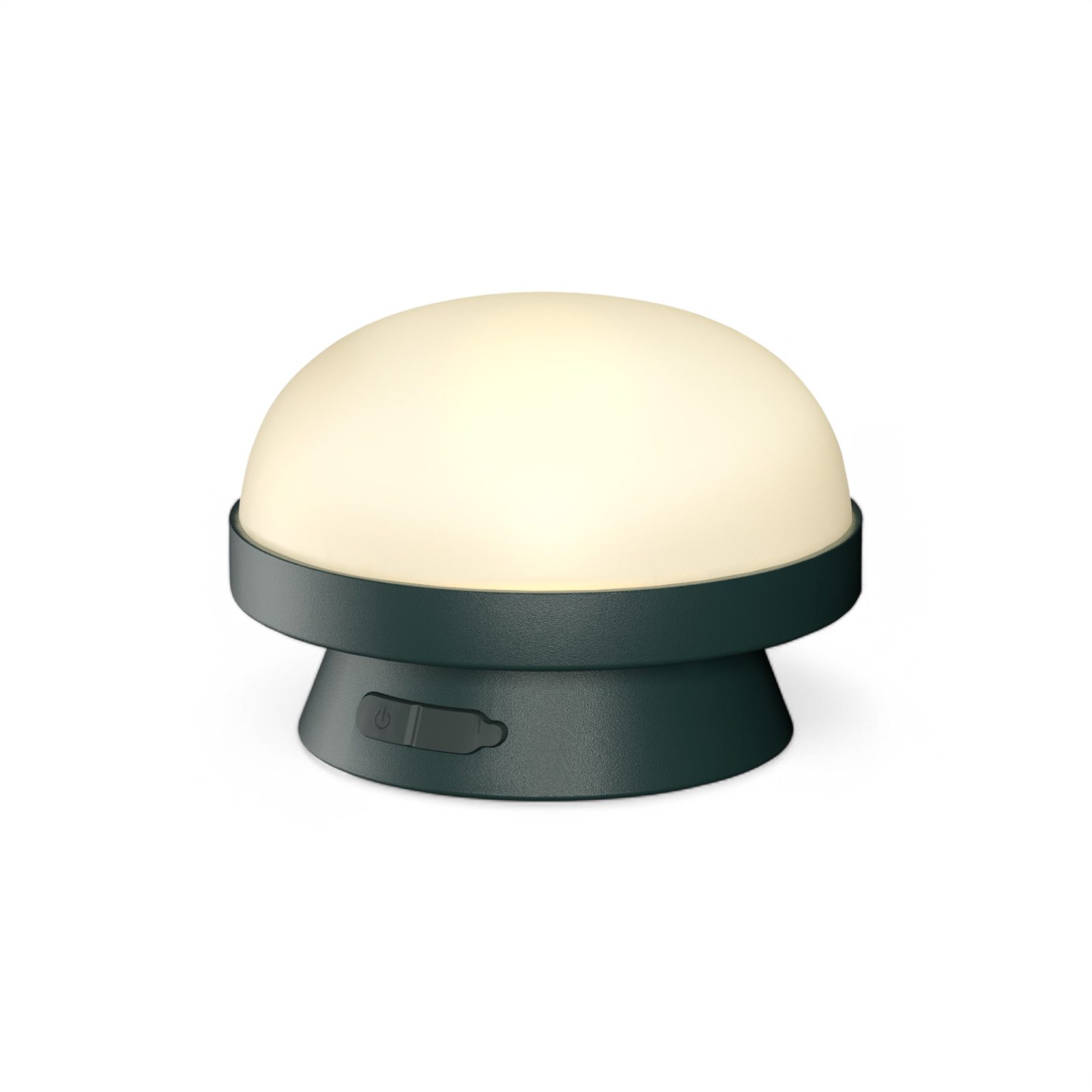 Designed by Maria Berntsen, the Soft Spot Solar Dot in Forest Green brings ambient light with quiet efficiency. Its conical aluminum base and floating dome conceal solar panels that charge during the day, with a USB-C backup for cloudy skies (cable not included). A built-in dusk sensor automatically activates the warm LED glow at night.