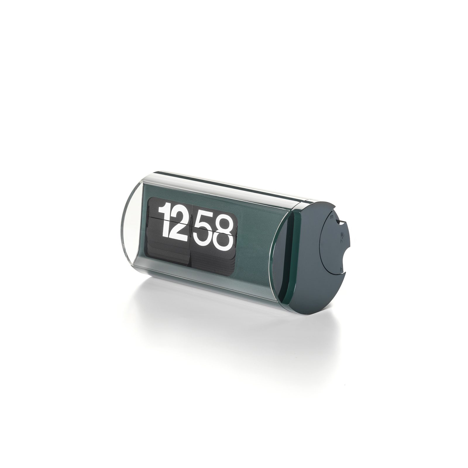 One of the world’s best-known flip clocks and the smallest direct-reading clock, Cifra 3 transforms the passage of time into a visual and audio spectacle. The legendary Cifra 3 clock from Solari was created in the 1960s by world-renowned architect and designer Gino Valle. A huge success from the very beginning, it became an iconic example of modernist design and a crucial part of Italian design history. Now, it’s a veritable collector’s item. The clock features the original design, complete with the split-flap system, rotary movement, and curved front. This version features a dark green cylindrical case and black cards with white minute and hour digits. With each passing minute and hour, Cifra 3 produces a distinctive flip sound, making it perfect for living rooms and offices. Each flip clock is skillfully made in Italy by craftspeople who assemble the flaps by hand in a specific order.