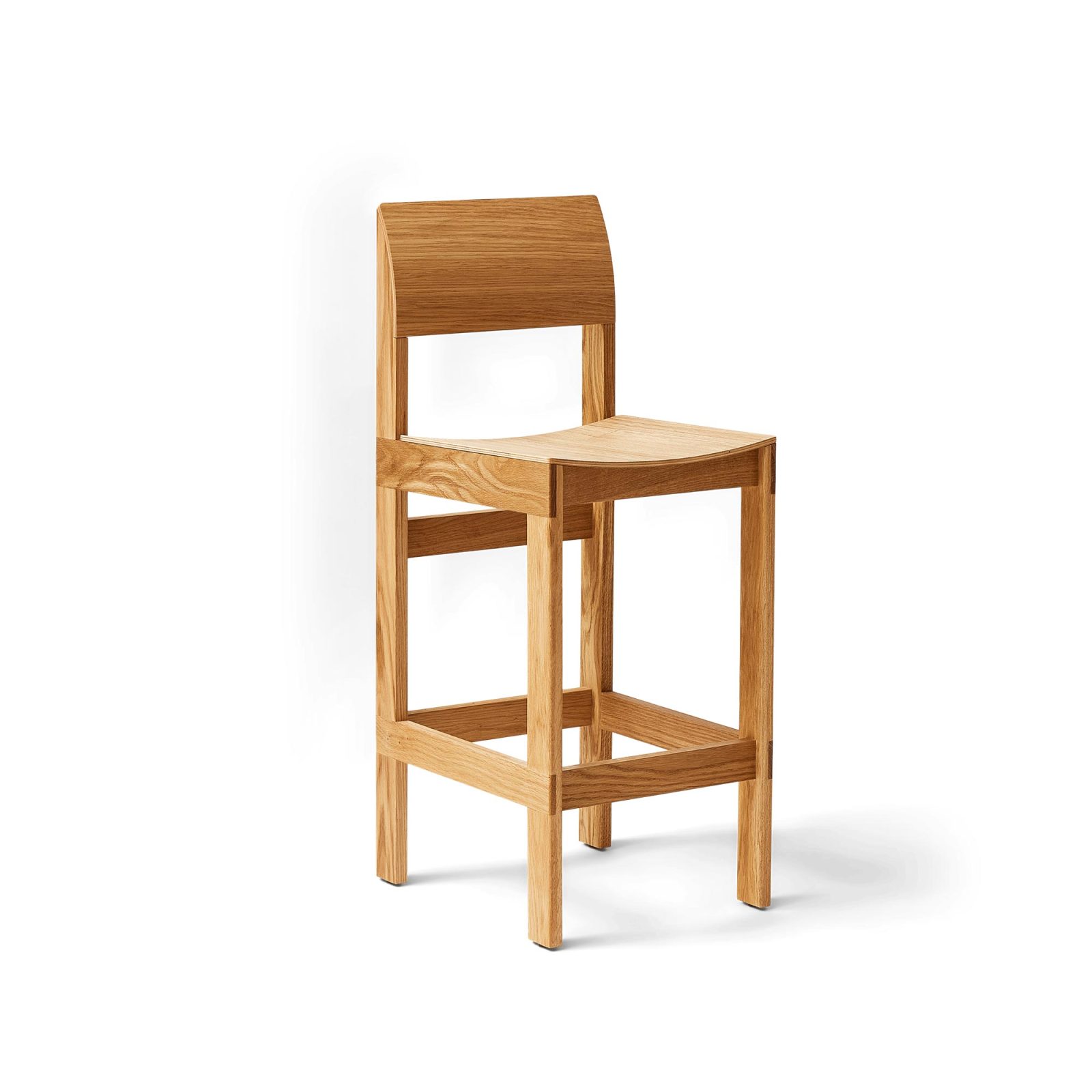 Designed by Herman Studio for Form & Refine, the Sonder Bar Chair 65 pairs an honest oak frame with a molded seat and back that gently cup the body.