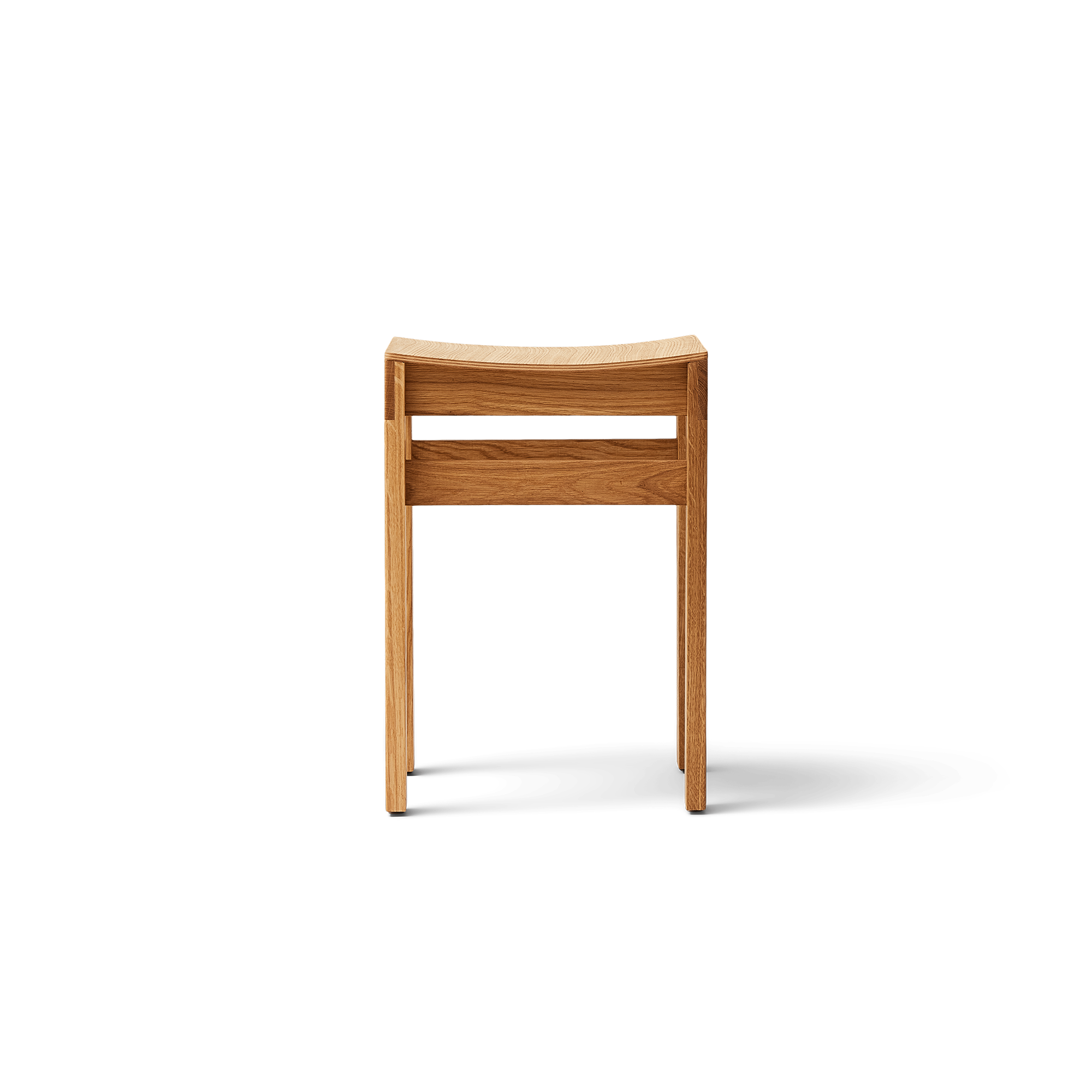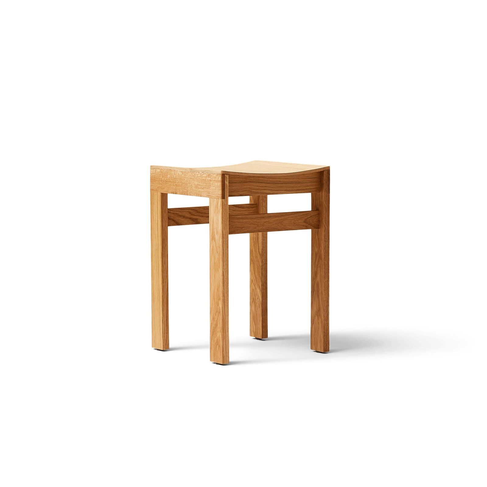 Designed by Herman Studio for Form & Refine, the Sonder stool takes its name from the idea of noticing others’ experiences—here translated into a seat that balances strength with comfort. The softly curved oak veneer feels calm under hand, set against the sturdier geometry of square legs and crossbars.
