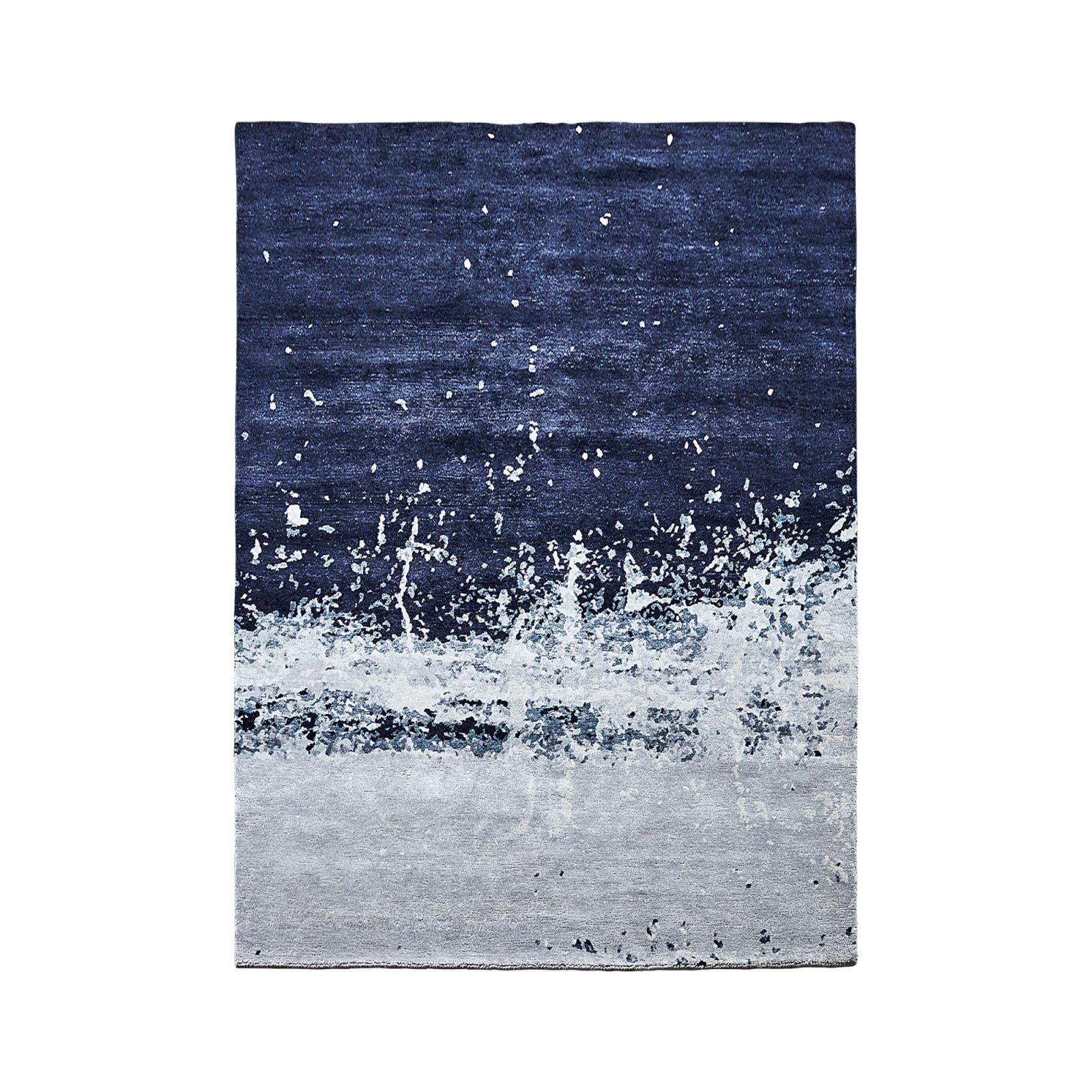 The Stardust Rug captures shifting tones and textures, with deep blues dissolving into soft neutrals. Inspired by natural elements, its abstract design evokes a horizon at dusk or waves meeting the shore.