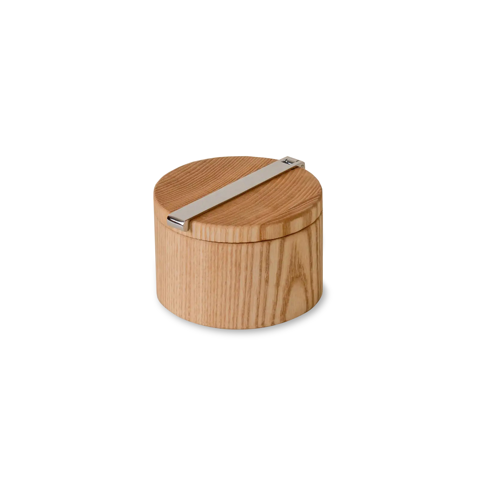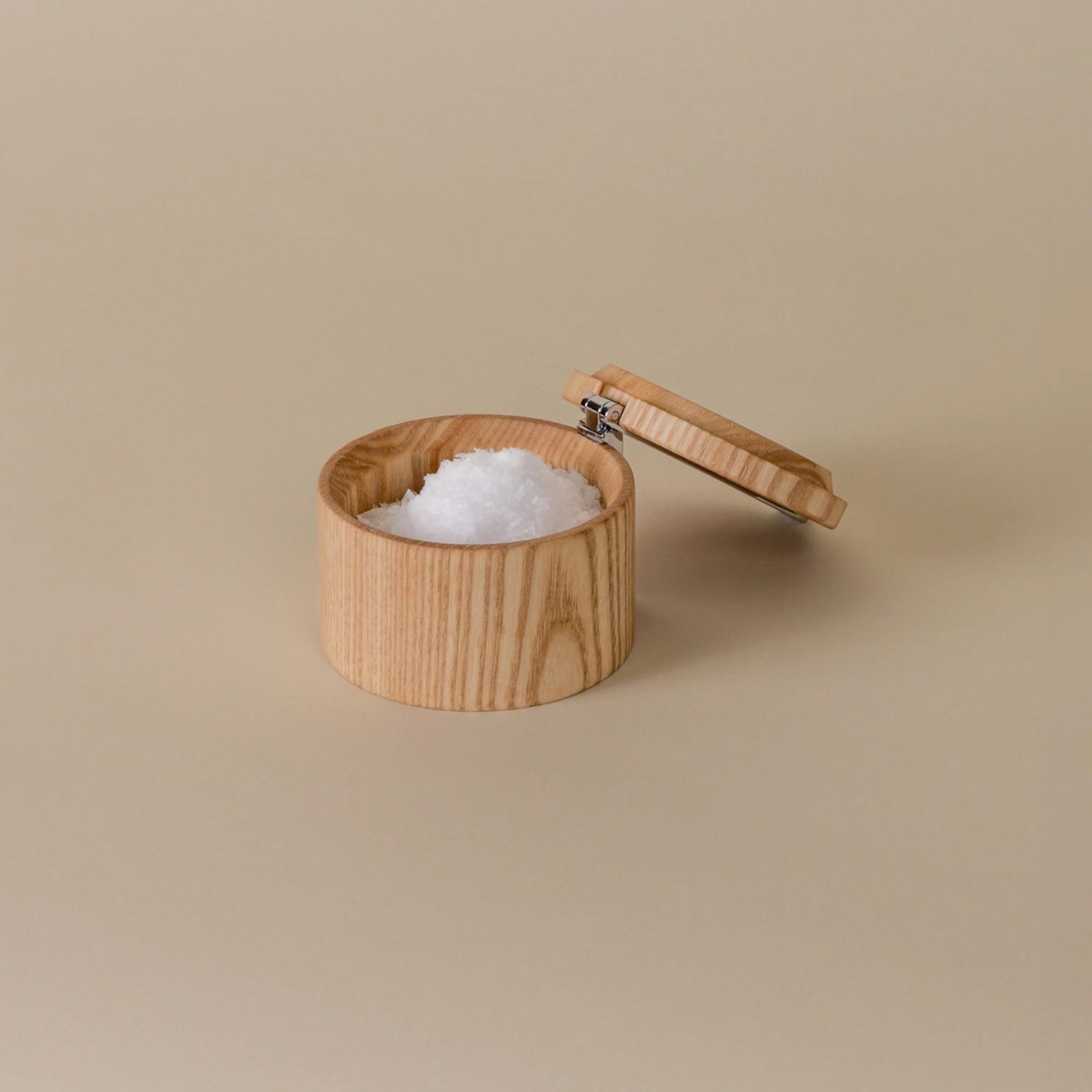 Stash is the salt cellar for people who actually cook. It’s a simple ash-wood cylinder that sits on the counter and keeps salt where you want it: close, covered, and clean. The lid has a stainless-steel bar that gives you leverage, so it opens quickly with one hand, even when the other is busy or messy.