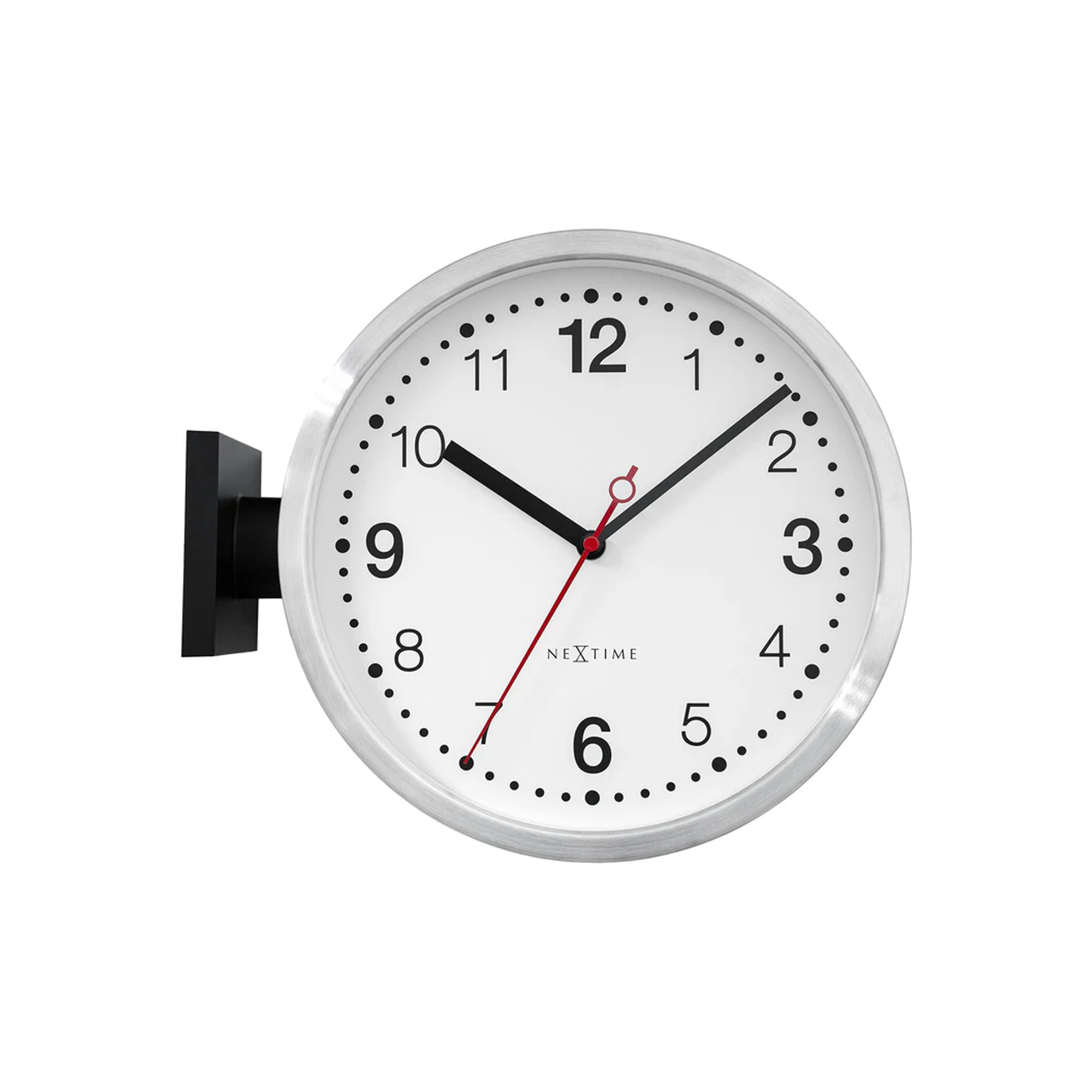 This exceptional station clock features not one, but two clock faces, allowing you to hang it anywhere and easily check the time from two different angles. The clock boasts a silent movement, ensuring a peaceful environment while accurately keeping time. For your convenience, it operates on 2 AA batteries (batteries not included).