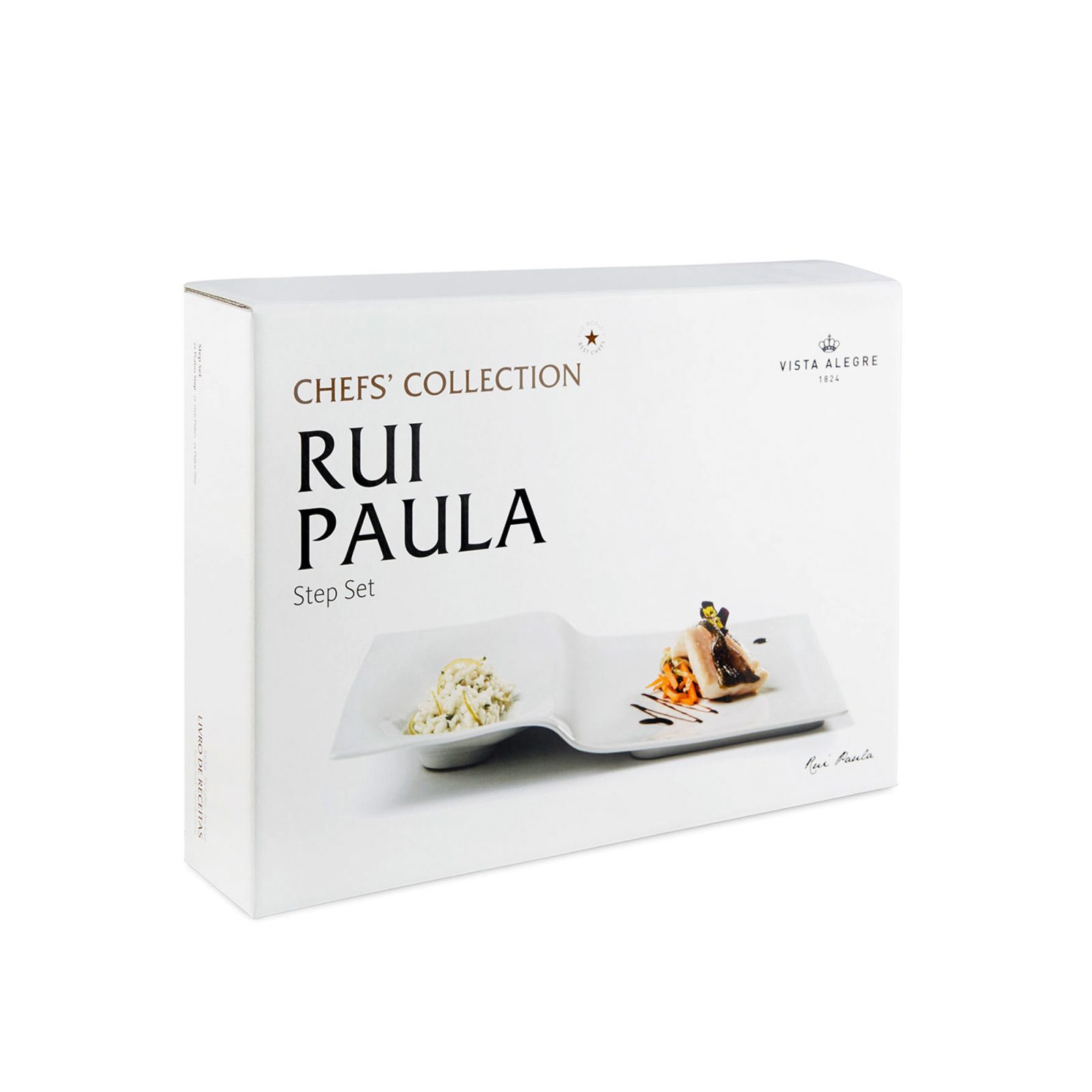 Vista Alegre’s focus on crafting plates for fine dining is highly regarded among acclaimed chefs, both at home and around the world. The Chef’s Collection exemplifies the concept of transforming simplicity into an enchanting visual experience. A remarkable addition to this collection is the Chef’s Collection Step Set, designed to elevate culinary presentations. This set features a sleek rectangular shape with a step-like structure, creating a stylish platform for food presentation. The step not only accommodates small bowl-shaped forms to hold the food but also serves as a practical food tray, adding functionality to its elegant design.