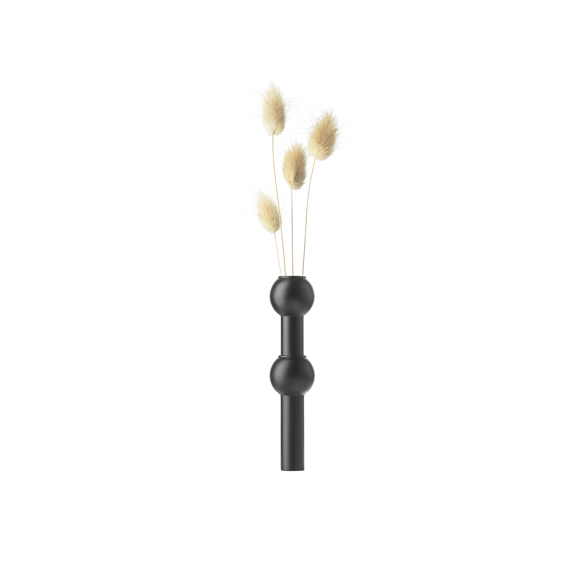 You can drop in a few dried grasses, a single rose, or whatever is on hand. On its own it’s a small vase; combined with other Nagel elements it changes the whole sculpture, giving height, color, and a sense of seasonality.