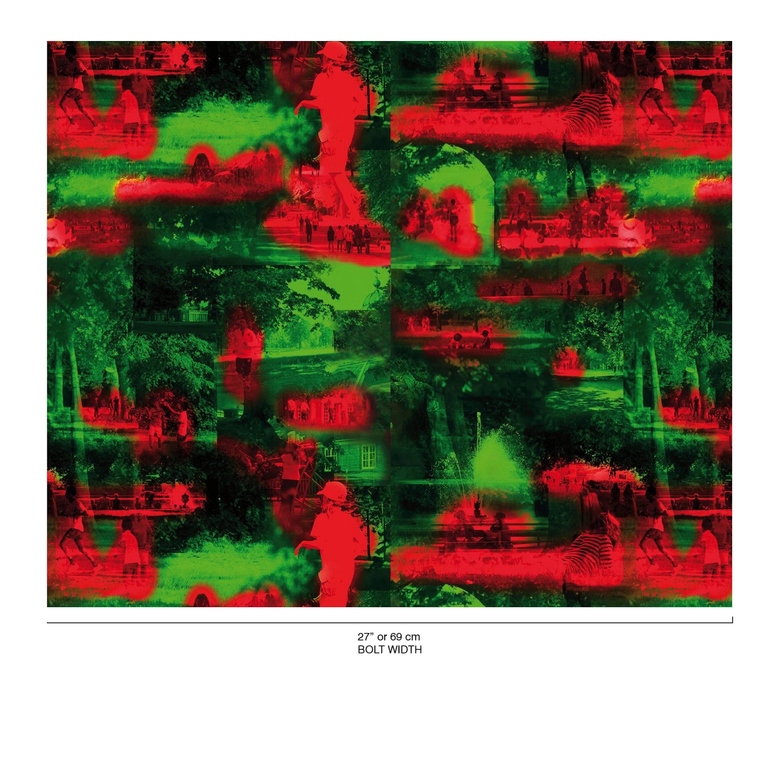 “Summer Hours in Kensington” is a design by the acclaimed architect Jean Nouvel for the Serpentine Galleries. This artwork captures the essence of summer, depicting scenes of children at play illuminated by vibrant scarlet hues. The setting is the lush and green Kensington Gardens in London. Nouvel’s creation resembles a toile-de-Jouy, with its montage-like composition, evoking the carefree and joyful atmosphere of summer days spent in the park.
