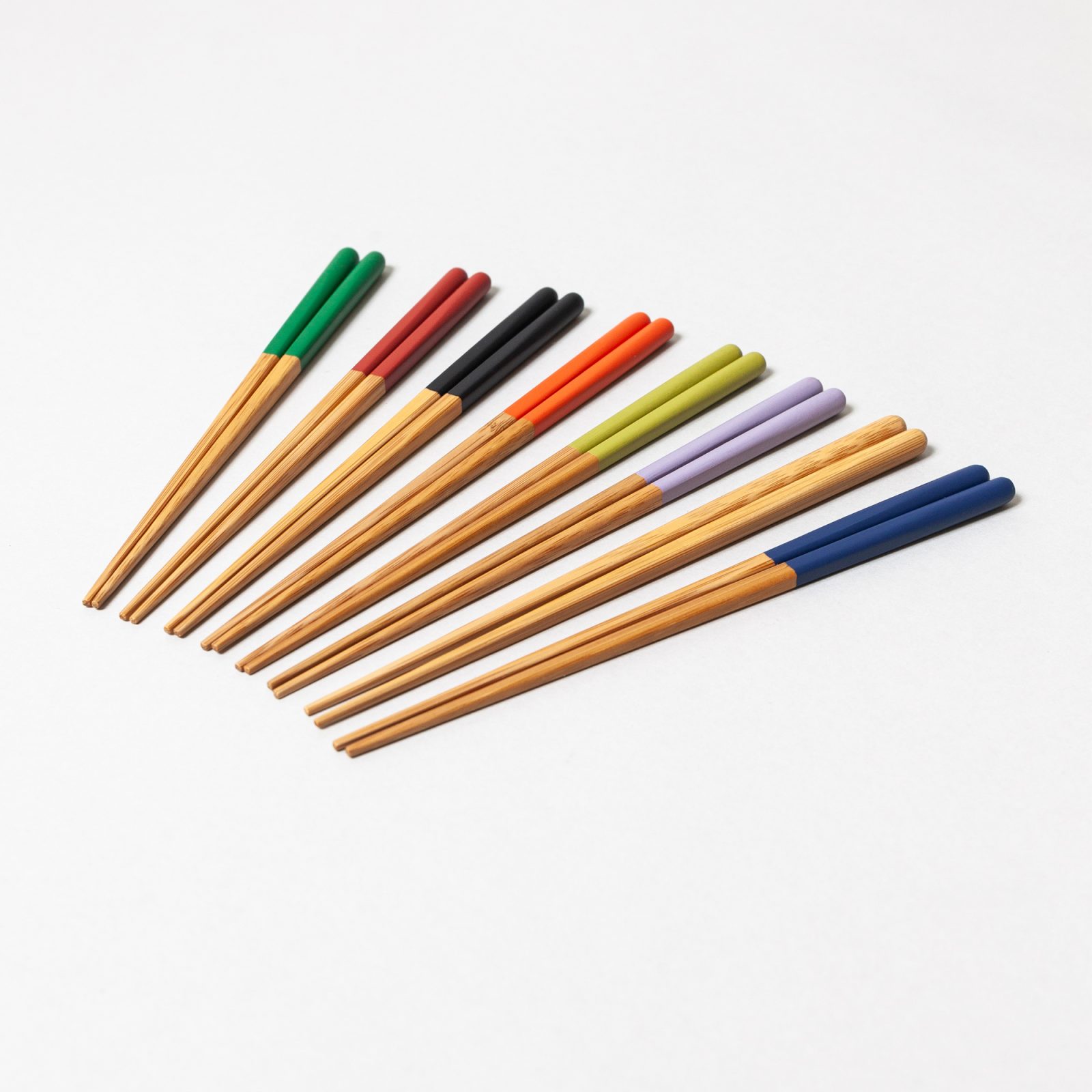Susu Round Bamboo Chopsticks sport a colorful curved top, while the flat planes of their natural wood portions help keep this flatware from rolling out of reach. A shorter length and lightweight construction make these a perfect option for young ones or those with smaller hands. Crafted from Moso bamboo, a sustainable and renewable resource, and available in 8 colors.