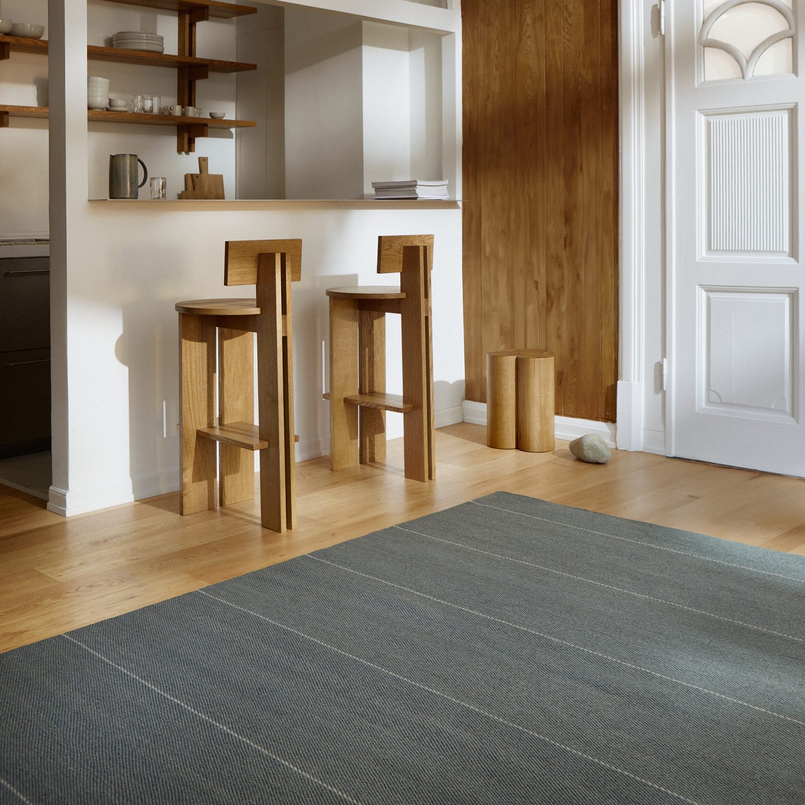 The Svalin Rug by Fabula Living, designed by Jens Landberg Schrøder, offers a refined blend of natural, muted tones with soft, vibrant stripes. Hand-woven from premium New Zealand wool, this rug features a unique twill weave and a linen chain that creates a subtle, blurred stripe effect. With shades of green, beige, and gray, the Svalin Rug adapts beautifully to different lighting and surroundings, providing a versatile balance that can be striking or discreet, depending on your space.