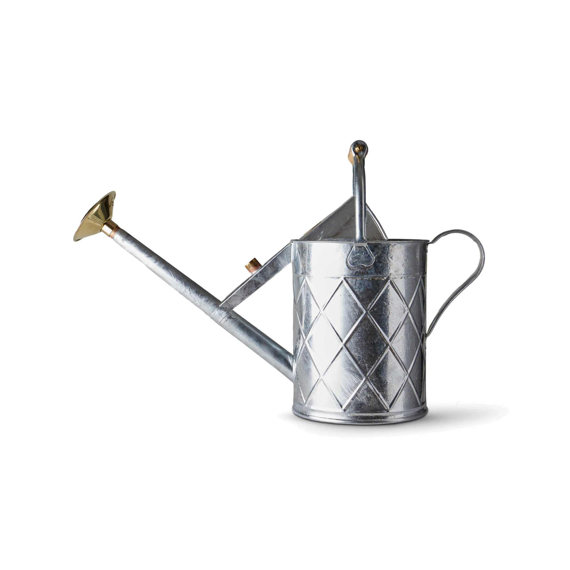 Pressed-steel panels, criss-crossed like a kitchen pie lattice, wrap the Hockley Heritage can and give the body extra rigidity without adding heft. Hot-dip galvanising seals the metal inside and out, so a light knock or a season in the rain won’t ruffle its finish. A solid brass rose threads onto the broad spout for a generous, even shower, while a curved steel rear handle lets you swing the full can with steady control; the ash-wood top handle stays, smoothed and varnished for a comfortable lift. Every piece is shaped, dipped, and finally hand-assembled in Haws’ West Midlands workshop—then warranted for ten years of early-morning water runs.