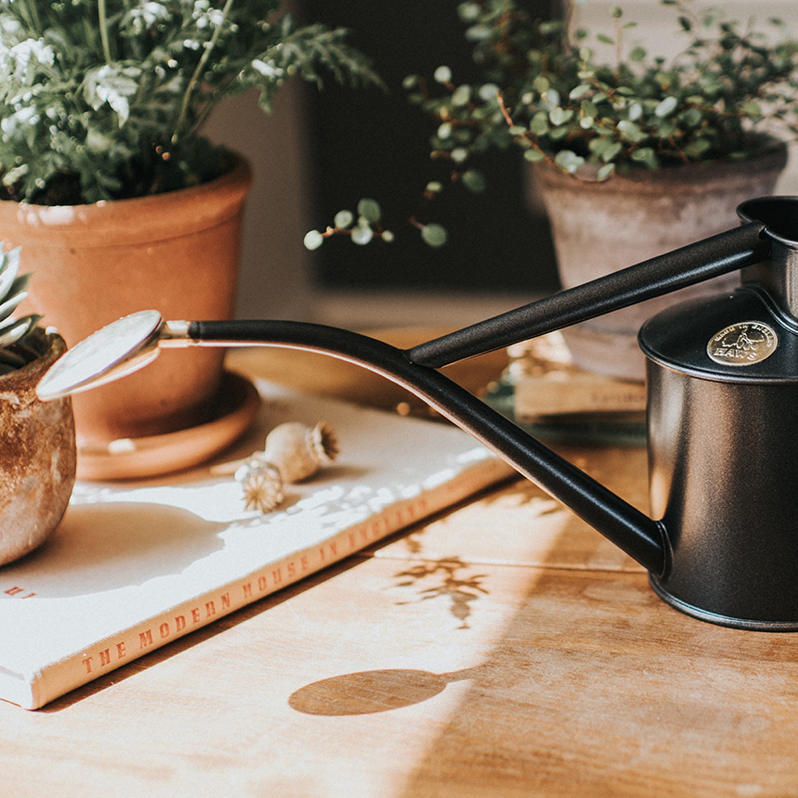 Built for plant lovers with a thing for good design, the Rowley Ripple in graphite makes a strong case for keeping your tools as handsome as your greenery. Made in England by Haws, this two-pint watering can pairs a powder-coated steel body with a brass rose and elongated spout for precise, splash-free watering. It’s just the right size for houseplants, windowsill herbs, and smaller outdoor pots. The soft graphite finish adds a modern touch without shouting for attention, while the perfectly balanced silhouette makes every watering session feel more intentional. Lightweight, functional, and surprisingly elegant, this is one of those rare utilitarian objects you’ll actually want to leave on display. Comes boxed and ready for gifting—or keeping.