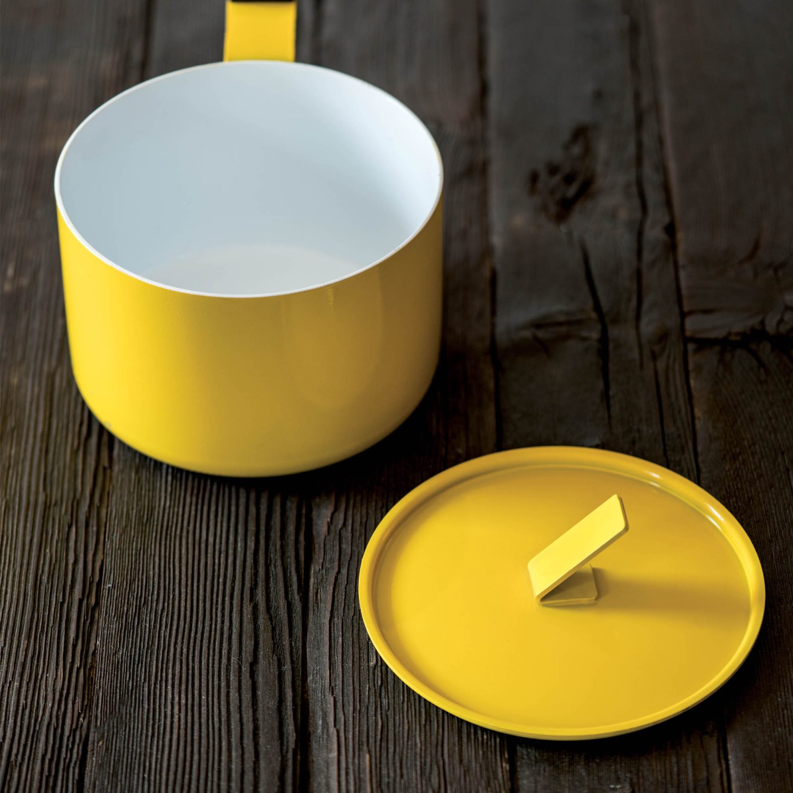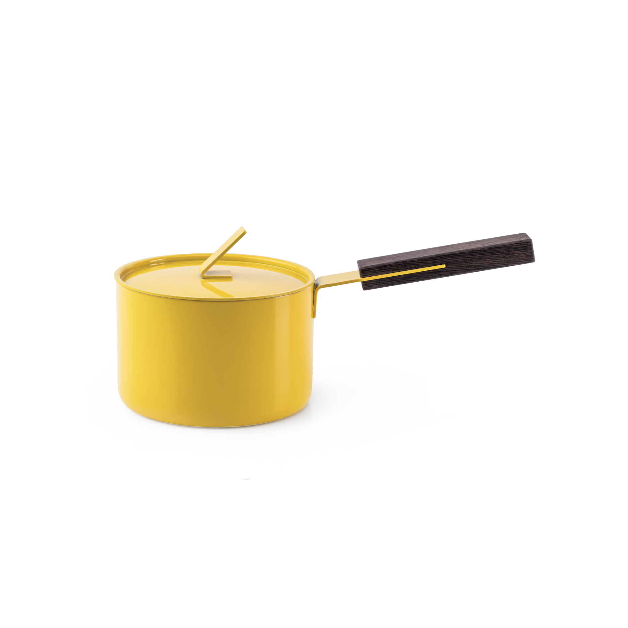 Bright, compact, and ready for daily cooking. The Saucepan by knIndustrie pairs a sunshine-yellow enamelled-iron body with a dark wooden handle that feels steady in the hand. The straight sides keep volume without bulk; the snug lid settles heat for quiet simmering. It’s the pan you grab for butter sauces, morning oats, blanching greens, warming soup for one, or finishing a glossy glaze before it hits the table. Designed by Lara Caffi for the Beyond Basic collection, it nods to 1960s Nordic kitchens while staying firmly modern—and table-worthy.