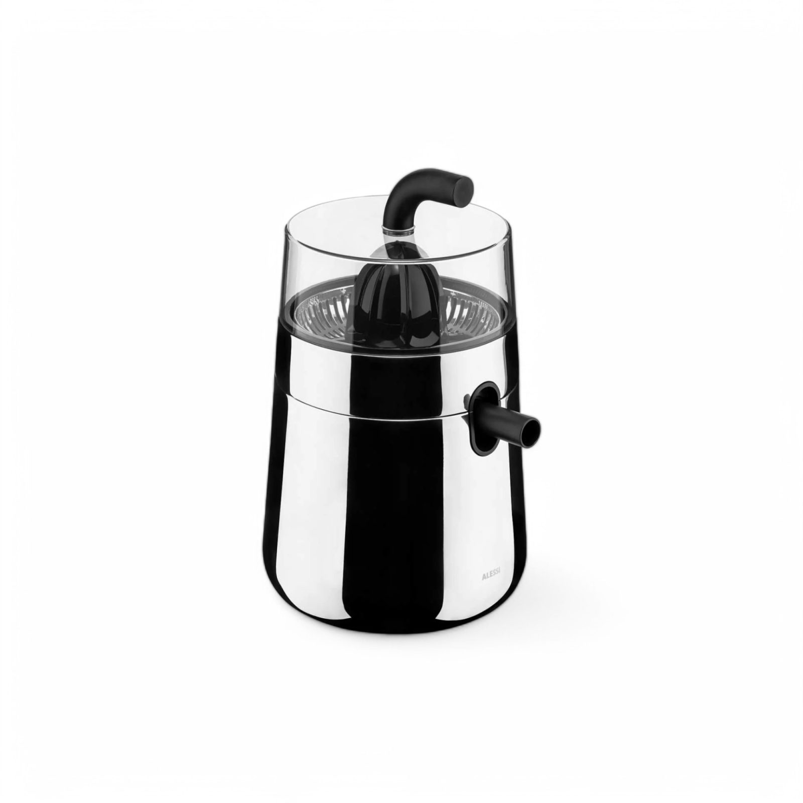 Stay on top of your vitamin C intake and keep your kitchen stylish with the Alessi Toru Electric Citrus Squeezer. Designed by award-winning studio Nendo, this juicer is part of the Toru collection which translates to ‘through’ in Japanese. Like the other products from this series, the electric citrus squeezer features tubular elements that create an optical illusion. In this case, the curved handle seems to “cut through” the transparent lid and then emerge from the body of the juicer as a spout. Easy to use, the Alessi Toru Electric Citrus Squeezer allows you to prepare fresh juice every morning and pour it with ease in glasses. Made from polished stainless steel and thermoplastic resin, this elegant electric juicer is as durable as it is beautiful.