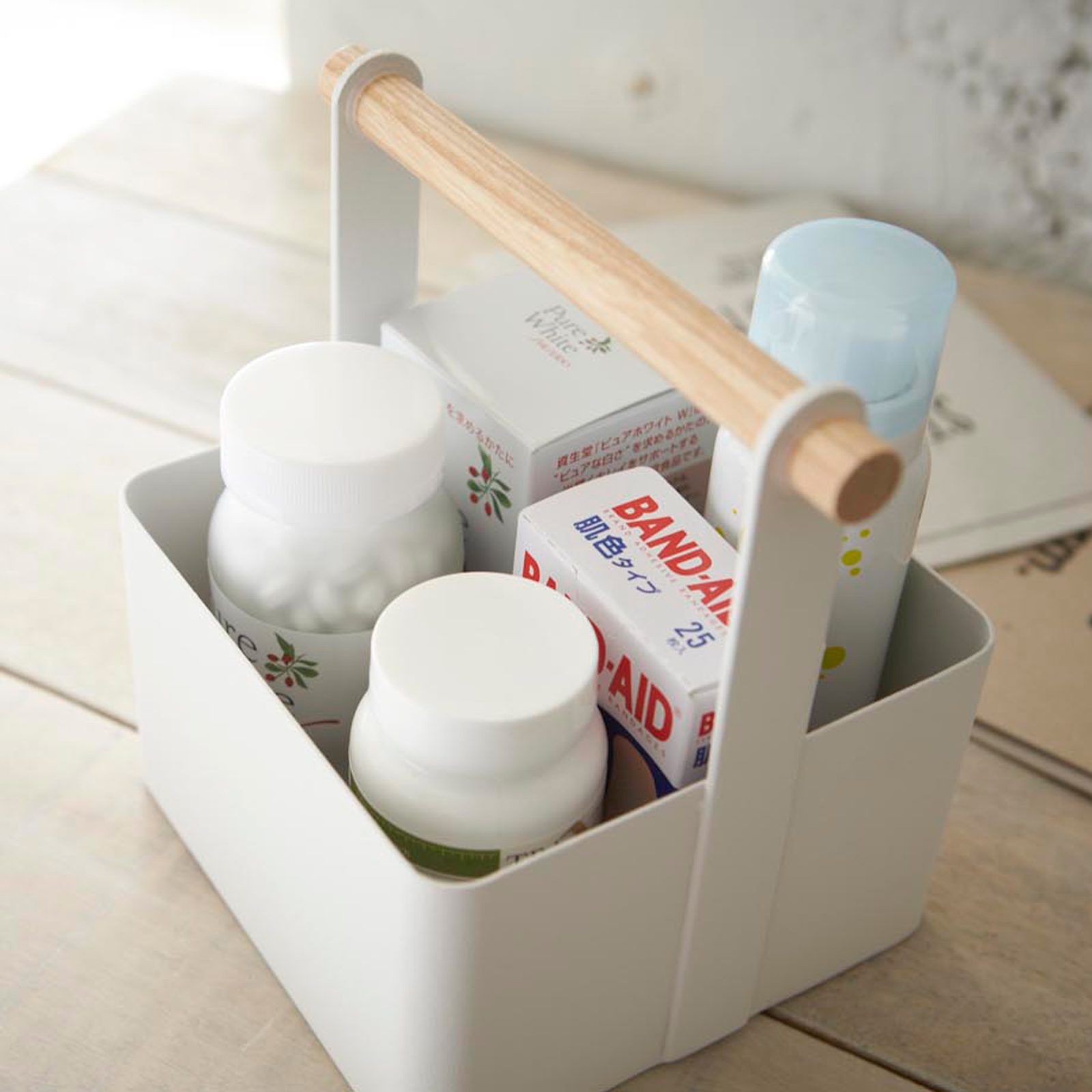 Tosca Tool Box Small White offers a stylish storage solution in a practical design. Made by Yamazaki, this tool box is compact but spacious. It occupies a minimal footprint on a shelf yet offers generous storage in the spacious interior. Ideal for smaller tools, this tool box also suits band-aids and first aid items, bathroom supplies, and other accessories. Crafted to last, the box features a steel and wood build. While the metal features an immaculate white finish, the handle displays the natural colors of wood along with organic textures. The Tosca Tool Box Small also comes in a large version.