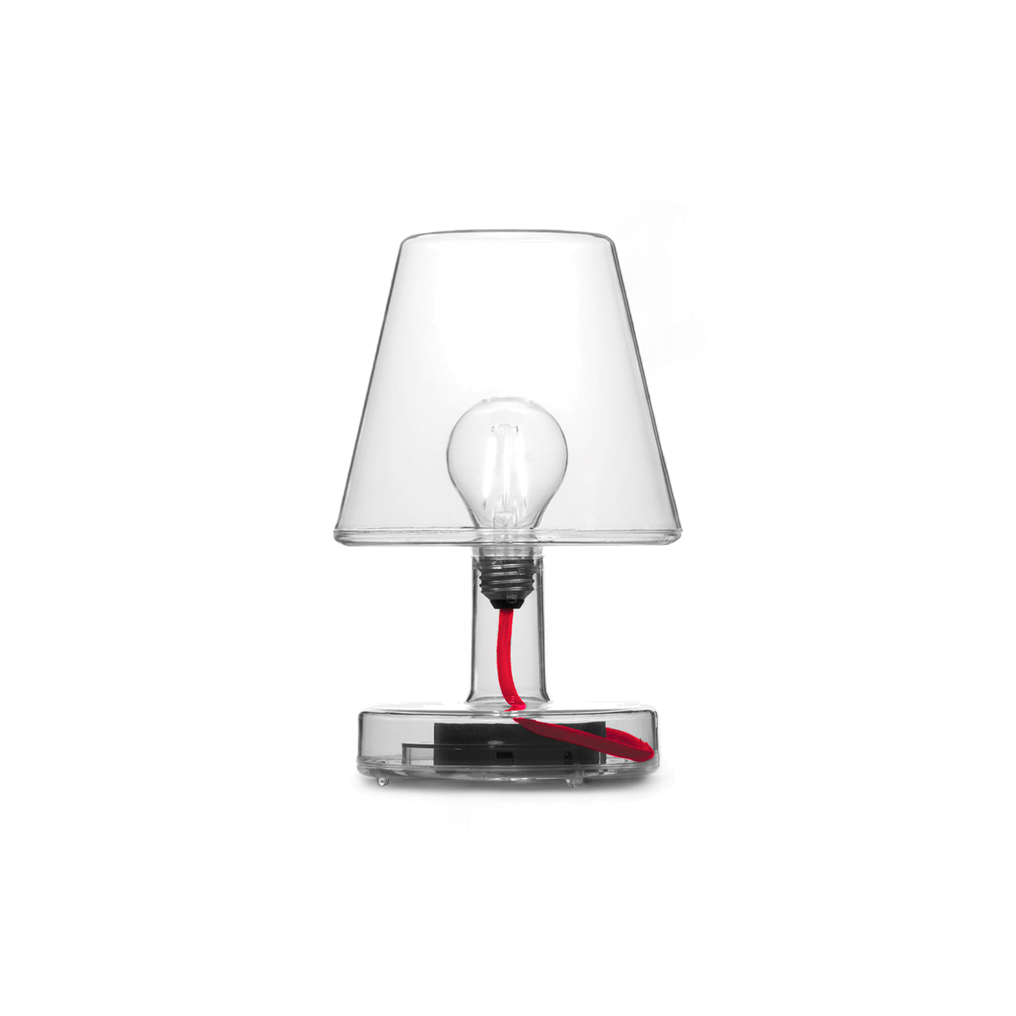 Transloetje takes the familiar shape of a classic lamp and strips it down to its essentials. Made from transparent polycarbonate, it reveals its own structure—bulb, base, and all—while casting a soft, dimmable LED glow.