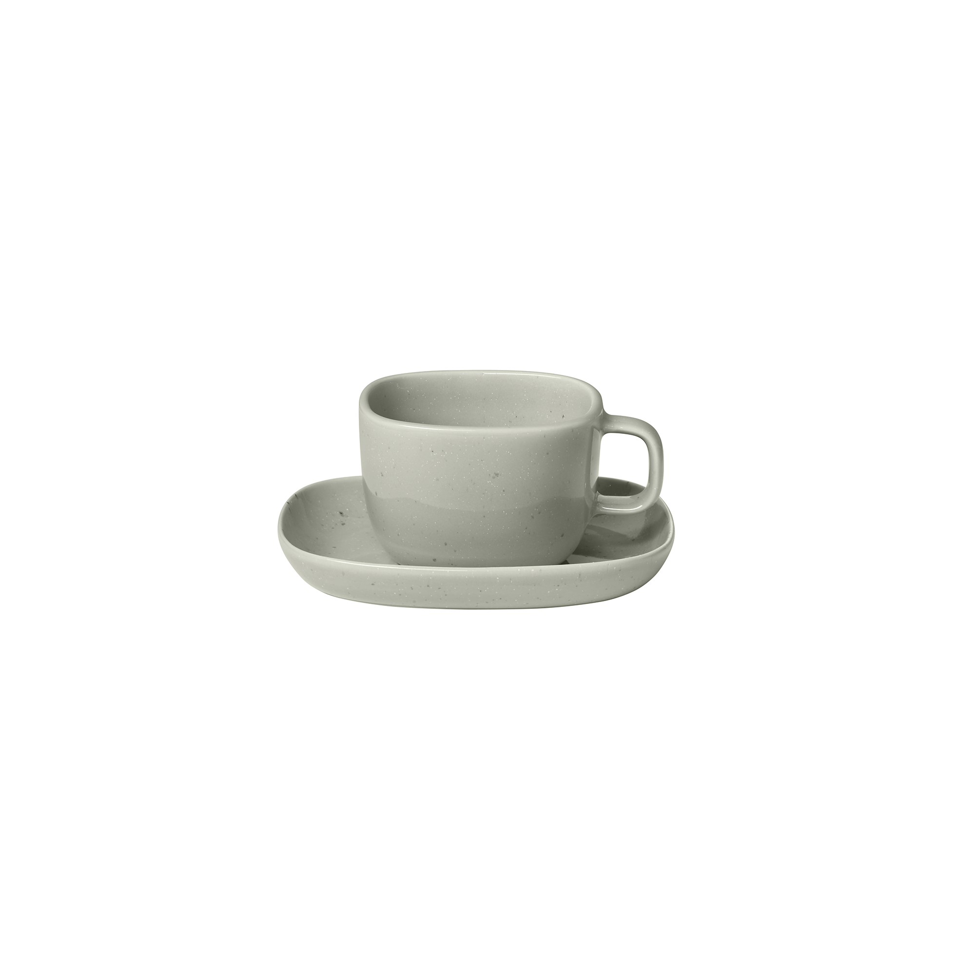 Set of two cups with two saucers. Stackable, sturdy, weekday-ready. Pull them from the shelf when friends drop by, or keep a pair by the machine for the daily ritual.