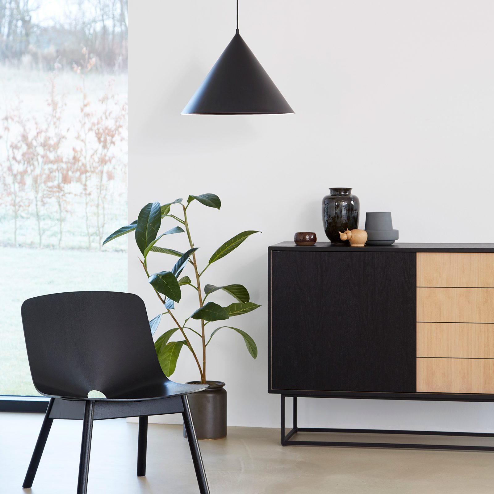From dining areas to living rooms, the Woud Virka Sideboard brings effortless refinement to any space. Danish studios MOAAK and Røpke Design have collaborated to create the Virka collection, resulting in a timeless design that puts the focus on the beauty of simple, clean lines and forms as well as on the charm of natural textures. Made from oak with a white oil treatment, this stylish sideboard features one black door and top. A black frame made of metal adds a light accent to the design thanks to its slender shape. Sliding open for more convenience, the two doors reveal adjustable shelves and two holes for cable management. Fully assembled, the Woud Virka Sideboard High Oak Black is ready to use right away.